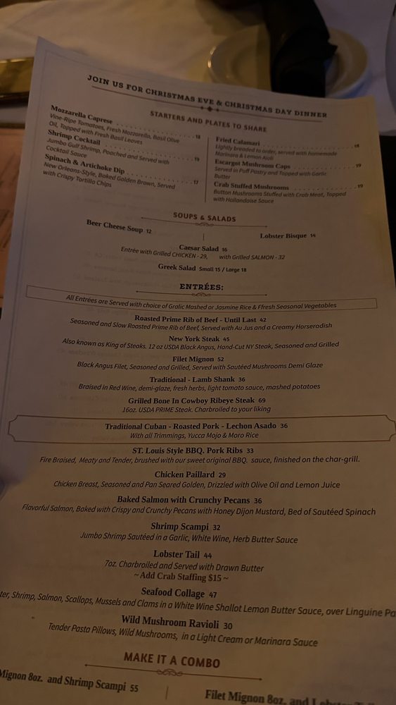 Introducing the menu at 94th Aero Squadron, a New American restaurant in Miami that offers Breakfast & Brunch options. With a vintage aviation theme and cozy atmosphere, this place is known for its nostalgic charm and solid food. The menu features fresh fish creations like Baked Salmon with Crunchy Pecans and MahiMahi Scampi, as well as signature dishes like Beer Cheese Soup and Crab Stuffed Mushrooms. Customers rave about the steaks, great drink selection, and Sunday brunch spread with a live piano player. The service is top-notch, with attentive waitstaff like Yunier providing a memorable dining experience. If you're looking for a unique ambiance and delicious dishes, 94th Aero Squadron is the place to be in Miami.